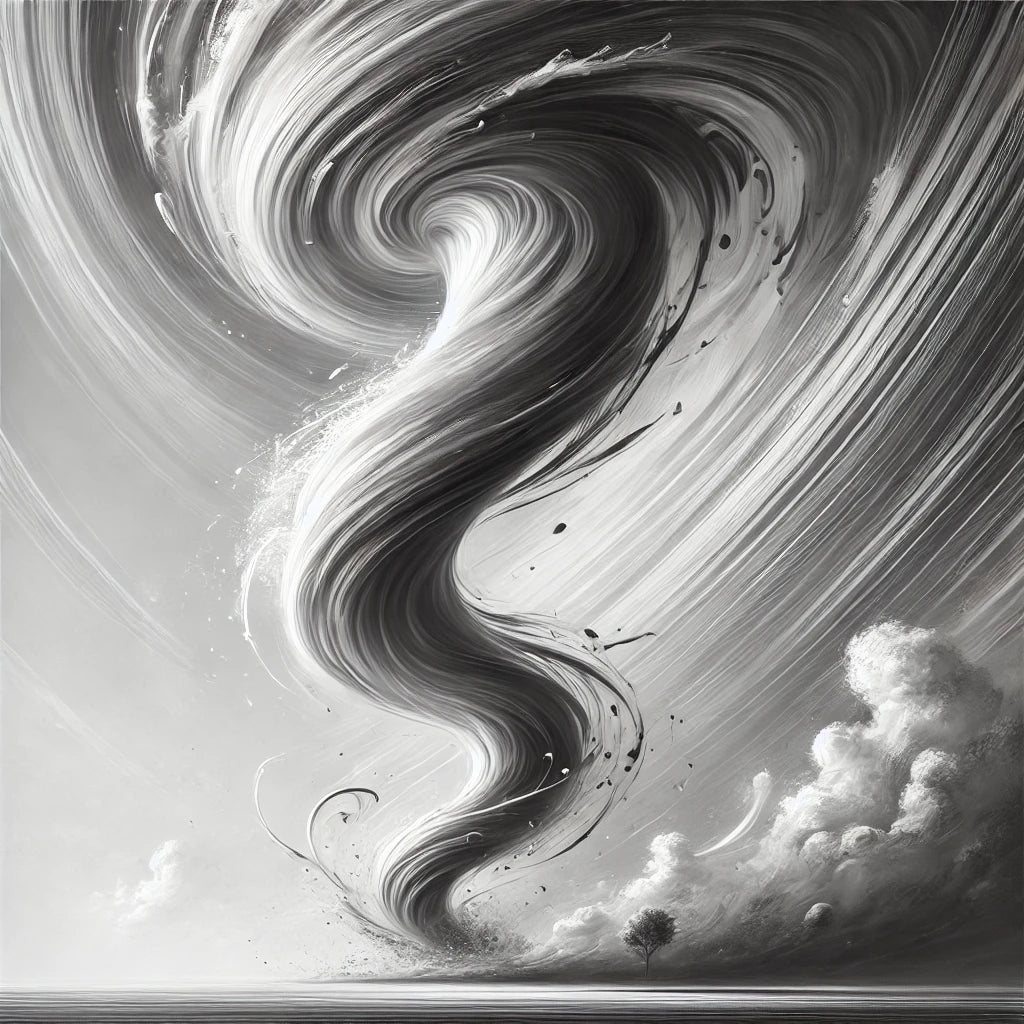 The tornado series pays tribute to the raw, untamed power of nature and the breathtaking beauty of its forms. Inspired by the complex dynamics of tornadoes, these works seek to capture the essence of this awe-inspiring phenomenon.Tornadoes are formed by the interaction of warm and cold air, as well as a rotating motion. These seemingly simple rules give rise to some of the most spectacular displays of nature's power, from towering thunderstorms to swirling clouds to the devastating force of a tornado itself.